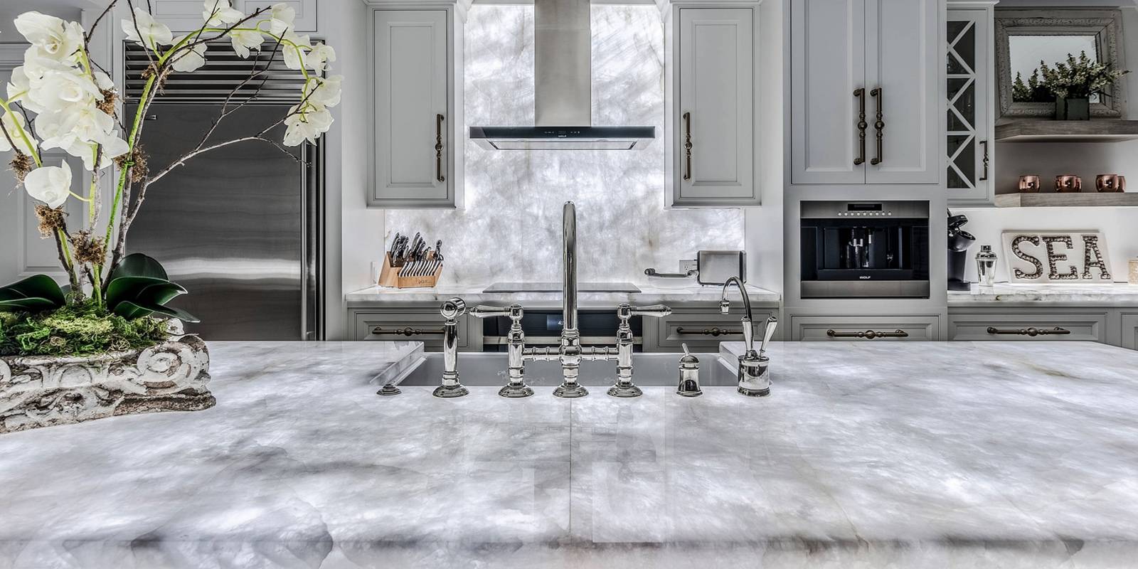 Quartzite combines the elegance of marble with granite-like durability and unique, natural patterns